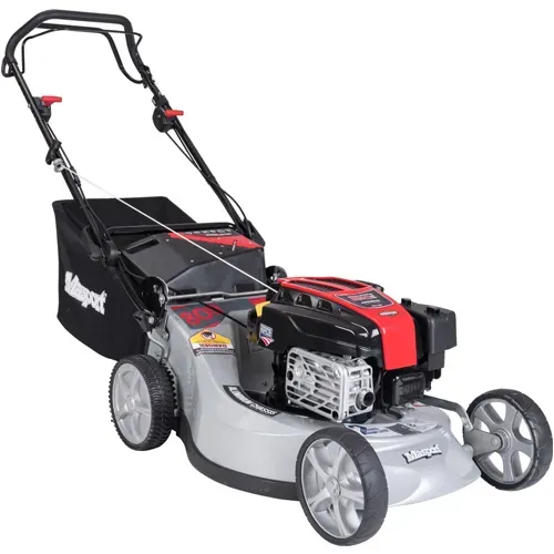 Powered by Briggs & Stratton 190cc OHV Series 850 Professional I/C® ReadyStart™ engine with a 21" heavy duty aluminum chassis, this mower can cut, catch, mulch and side discharge. This variable speed self propelled mower features a fabric catcher, ergo adjustable camlocks, zone start and a washport.